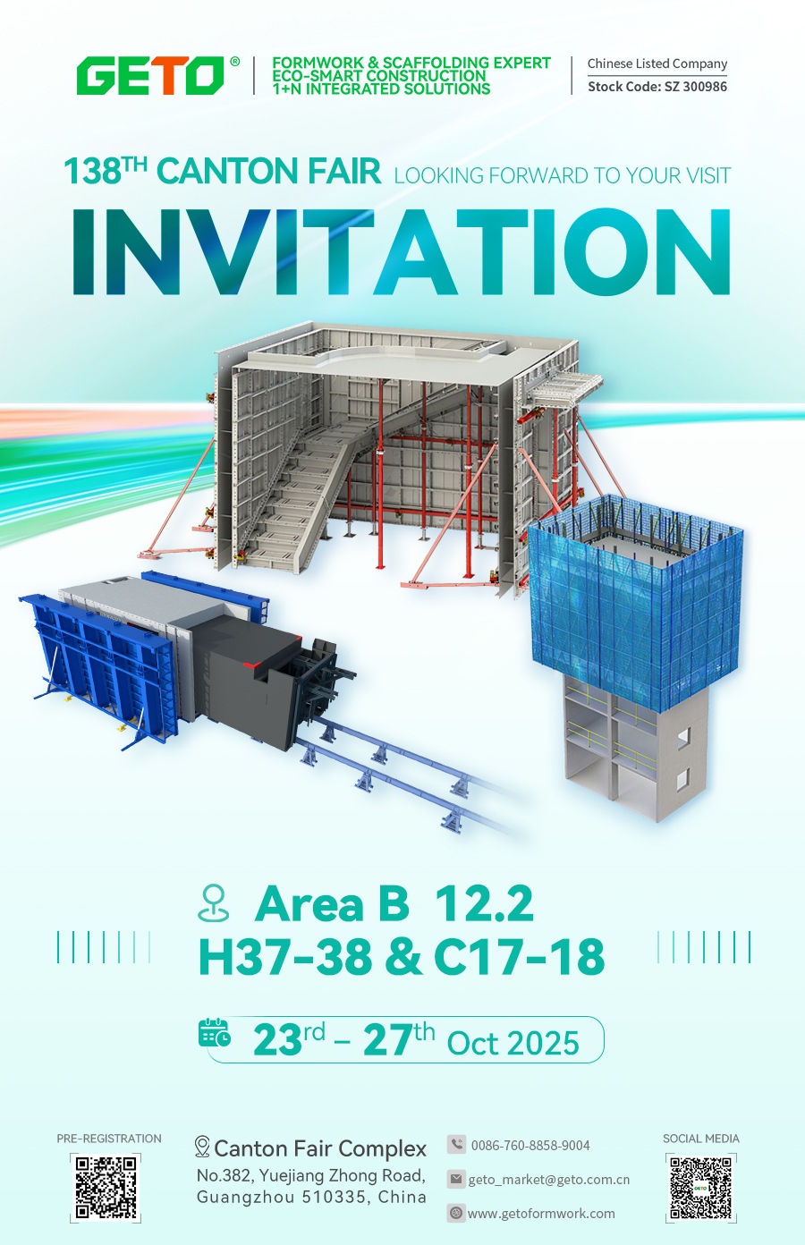 أكتوبر الذهبي، نلتقي بكم في قوانغتشو! سيُقام معرض الصين للاستيراد والتصدير (معرض كانتون) في دورته الـ 138، في الفترة من 23 إلى 27 أكتوبر 2025، في مجمع معارض كانتون. تدعوكم شركة GETO للمواد الجديدة لزيارة جناحنا والتعرف معًا على أحدث الابتكارات في قطاع البناء وفرص التعاون العالمي الجديدة.