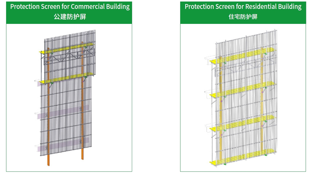 شاشة الحماية هي جهاز أمان مبتكر يتم تثبيته على الهياكل (الأرضيات أو العوارض أو الجدران) ويتم رفعه باستخدام رافعة برجية أو نظام هيدروليكي. تم تصميمها خصيصًا لتلبية احتياجات الحماية الطرفية للمباني الشاهقة والمباني الشاهقة للغاية.