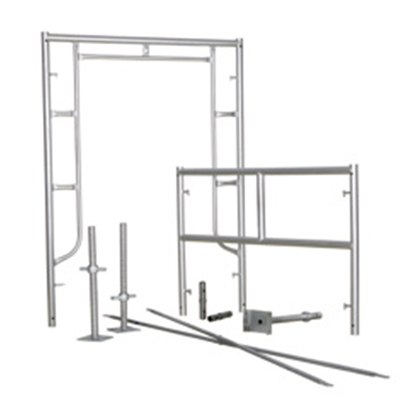 يتكون هذا النوع من السقالة بشكل أساسي من الإطار الرئيسي والإطار العرضي والدعامة المتقاطعة ولوح السقالة والقاعدة القابلة للتعديل.